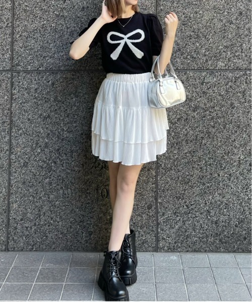 ふんわりとしたフリルが可愛い!レイヤーフリルヘムミニスカート【デザイン】2段のフリル感が可愛いらしい印象のミニスカートです。ウエストがゴムなので楽にご着用いただけます♪さらにインパン付きなのも安心できるポイントです!【素材感】着心地の軽いポリエステル素材伸縮性:なし / 透け感:オフホワイトのみ若干あり/ 裏地:インパンあり / ウエストゴム:あり手洗いによる洗濯可 / ドライ・ウェットクリーニング可【コーディネート】ショート丈のトップス合わせで韓国風なコーデに仕上がります♪カジュアルなスウェット合わせで甘辛コーデも◎【※お取り扱い上のご注意】1:モニター環境等により実際の商品と多少色味が異なって表示される場合がございます。予めご了承下さい。2:屋外で撮影された商品は、天候により多少実際のカラーと異なる場合があります。商品のカラーはトルソー(マネキン)の商品画像をご参照ください。3:濃い色の商品は、お洗濯や摩擦等による移染にご注意ください。4:末永くご愛用頂く為に、アテンションタグ・洗濯ネームを必ずご確認の上、着用又はお取り扱い下さい。5:生産時期により、色、サイズ、デザイン、素材の質感が多少が異なる場合がございます。あらかじめ御了承下さいませ。