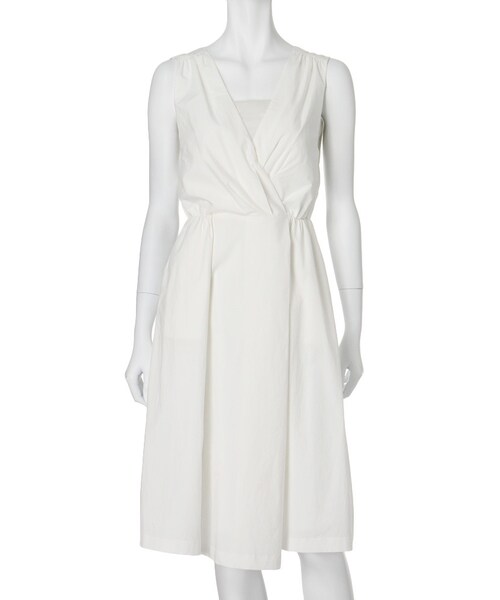 ボリューム感の少ないフィット&フレア、ミッドカーフ丈が大人シルエットになっています。ジャンスカの様に重ね着しても両脇からインナーが見える様にアームホールが大きめになっています。ボトルネックやオフショルカットソーなどの合わせがオススメです。