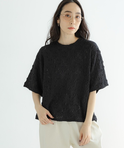 トレンド感のある華やかな一枚 レイヤードのインナーにもおすすめなプルオーバー ーーー 【素材】 伸縮性のあるフラワーレース生地を使用。 ポコポコとしたジャカード素材は程よい透け感があり、暑い時期におすすめです。 【デザイン】 華やかなフラワーレースが目を惹くプルオーバー。 ゆったりとしたシルエットはカジュアルなアイテムとも合わせやすく、夏の着回しにおすすめです。 着丈は短めでコンパクトなので、アウトで着てもスッキリと着られるのも◎ ーーー 【スタイリング】 薄手&着丈が短めなので、上にトレンドのチュールベストをレイヤードしたり、キャミワンピのインナートップスとしても活躍します! デニムなどカジュアルボトムとのコーディネートがおすすめ♪