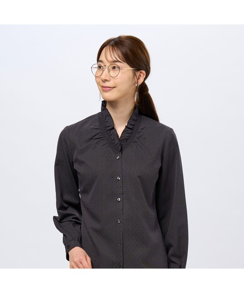 ■ COFREX(R) コフレックス ■ さらっとしたしなやかな着心地で 身体を優しく包むのが魅力的な コフレックス生地を、きっちり感ある ドレスシャツのシルエットで仕上げ、 快適なビジネススタイルに。 フリル+ギャザーの衿羽根が立体的で 艶やかなシャツスタイルに華やぎます。 シャツ生地はストライプとドットの 織柄で繊細で上品さを感じさせます。 【衿型】 Vネック衿 【BRICK HOUSE by Tokyo Shirts / ブリックハウス バイ トウキョウシャツ】業界トップ水準を誇るノーアイロンの形態安定加工は自宅で洗濯可能でお手入れ簡単!高度な縫製技術を用いた高付加価値シャツでありながら選ぶことを気軽に楽しめます。ベーシックから多様なデザインまで幅広いバリエーションで豊富なサイズ展開で、ディテールの隅々にまで織り込んで一枚一枚丁寧に仕立てられたシャツです。