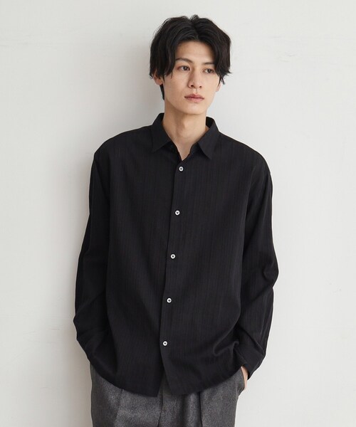 【素材/機能特性】コットン100%ならではの柔らかいタッチ感と肌触りが特徴。秋口に最適な薄手で軽量な素材感です。【デザインポイント】さりげないレース編みの表面柄で素材にメッシュのような抜け感のあるが特徴。Tシャツの上にサラリと羽織れる大人のデザインシャツです。※照明の関係により、実際よりも色味が違って見える場合があります。また、パソコン・スマートフォンなどの環境により、若干製品と画像のカラーが異なる場合もございます。モデル情報:身長185cm B81 W68 H90 着用サイズ:03(L)店舗へのお問い合わせ商品番号:616-89017●製品寸法:01(S):着丈70cm B114cm 袖丈57cm 裄丈82cm 肩幅51cm アームホール11cm02(M):着丈72cm B118cm 袖丈58cm 裄丈84cm 肩幅53cm アームホール11cm03(L):着丈74cm B122cm 袖丈60cm 裄丈87cm 肩幅54cm アームホール12cm04(LL):着丈76cm B126cm 袖丈61cm 裄丈89cm 肩幅55cm アームホール12cm備考: