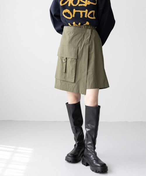 韓国ライクな雰囲気で仕上がった、トレンドスカパン! ■おすすめスタイリング ☆ベーシックな着こなしには・・・ ロングTシャツにブルゾンを羽織り、シンプルに合わせたスタイリングがおすすめ! ウエストにデザインの効いたアイテムなので、タックインすると映えます◎ ☆トレンドの韓国ライクスタイルには・・・ ゲームシャツやトラックジャージなど、ユニフォームデザインのトップス合わせがトレンド見え! バイカーブルゾンをずるっと羽織ったタイルも可愛い! ■ポイント 大き目のサイドポケットがアクセントになった、カーゴデザインのスカパン。 美脚見えを叶えてくれる、人気の台形シルエットの仕上がりです◎ アシンメトリーなフロントデザインが可愛く、着映えします! バック部分はパンツ見えするデザインで、ミニスカートが苦手な方も挑戦しやすいアイテム! 肌見せコーデトレンドの今持っておきたい、韓国ライクなスタイルにぴったり◎ ウエストはバックゴム仕様なので、ノンストレスで楽な穿き心地です! ■素材 程よく厚みがあり、さらっとした生地感で穿き心地◎ ベーシックかつクリーンに着こなせる着回しやすいブラックと、ミリタリテイストで仕上がったオリーブの2色展開です!