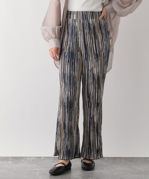 体のラインを拾わず、スッキリ見え。 肌離れがよく、オールシーズン着まわせる。 【素材】 ・型崩れせず、しわになりにくいのでお手入れが楽。 ・程よい光沢感とドレープ感で高見えします。 ・軽い着心地でさらっとした肌触り。 【デザイン】 下半身のシルエットをきれいに見せてくれるプリーツパンツ。 さらっとした履き心地で涼しげな印象に◎ ウエストもゴムで着心地らくらく。 ランダムストライプ柄がスタイリングののアクセントに◎ 【スタイリング】 ゆったりめのシアーシャツやデニムシャツと合わせると 抜け感のあるスタイリングがつくれます。 シンプルなカットソーとも相性◎です。 季節の変わり目に着まわしやすいアイテムです。 ----------------------------- 透け感:やや透ける 伸縮性:あり 生地感・厚さ:普通 裏地:なし ----------------------------- ※サックスブルーで計測しています。 ※こちらは参考情報となります。カラーにより多少の誤差がございます。 【お買い物が便利になる機能がたくさん!】 ▼商品のお気に入り登録▼ 完売アイテムの再入荷通知、ラスト1点、またクーポンやお値下げ通知をお知らせします。 ▼ブランドのお気に入り登録▼ 新商品や再入荷のお知らせ等、いち早くブランドのお得な情報を受け取ることができます。 ぜひご登録ください。
