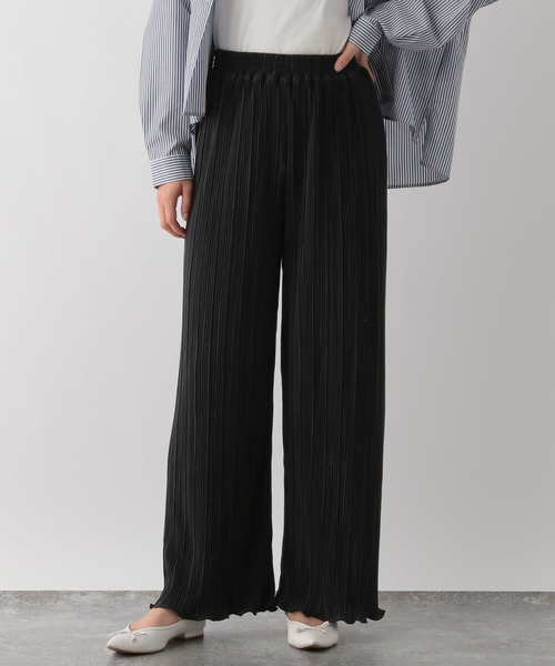 体のラインを拾わず、スッキリ見え。肌離れがよく、季節の変わり目に着まわしやすい。【素材】・型崩れせず、しわになりにくいのでお手入れが楽。・程よい光沢感とドレープ感で高見えします。・軽い着心地でさらっとした肌触り。【デザイン】下半身のシルエットをきれいに見せてくれるプリーツパンツ。さらっとした履き心地で涼しげな印象に◎ウエストもゴムで着心地らくらく。ランダムデザインのプリーツがポイントです。【スタイリング】ゆったりめのシャツやブラウスと合わせると抜け感のあるスタイリングがつくれます。Tシャツやパーカーなどのカジュアルなアイテムとの相性も◎合わせるトップスを選ばず、季節の変わり目に着まわしやすいアイテムです。-----------------------------透け感:やや透ける伸縮性:あり生地感・厚さ:普通裏地:なし-----------------------------※ベージュ系その他4で計測しています。 ※こちらは参考情報となります。カラーにより多少の誤差がございます。【お買い物が便利になる機能がたくさん!】 ▼商品のお気に入り登録▼ 完売アイテムの再入荷通知、ラスト1点、またクーポンやお値下げ通知をお知らせします。 ▼ブランドのお気に入り登録▼ 新商品や再入荷のお知らせ等、いち早くブランドのお得な情報を受け取ることができます。ぜひご登録ください。