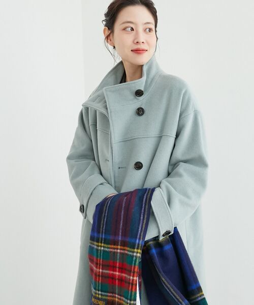 昨年に続きカシミヤ混のコートが、今年はクラッシックなムードはそのままに丈を少し長くし、胸に切り替えを入れて登場!ボタンを開いて襟を開いた状態ではチェスターコートのように、表情を変えて着ていただけます。●ポイントスタンドの衿が顔まわりを華やかに、小顔効果も!ベーシックなモカ、ブラックの2色に加え、重たくなりがちなコートスタイリングも華やかに見せてくれるライトグリーンの3色展開。●おすすめコーデパンツからスカートまで幅広いボトムと合わあせて頂けます。ワンピースの上にさらりと着るのも素敵です。シーズン長く着用出来る万能な秋冬アウターです。