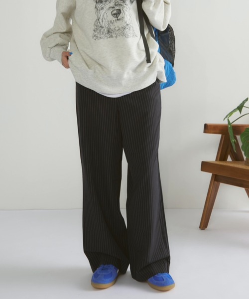 ストライプが映えるストレートシルエットのスラックス ■デザイン/素材 ストンと落ちたストレートシルエットとドレープ感のあるストライプ生地が縦のラインを綺麗に見せてくれます。 ウエストの後ろはゴム仕様になっており、スラックスながらイージーパンツのような楽な履き心地に。 オールシーズン使えるベーシックな生地も嬉しいポイント。 レングスを長めにしているため、身長150cm台の方はヒールを合わせてのご着用がおすすめです。身長160cm以上の方は ローヒールでジャストサイズで着用いただけます(画像参照)。 ■スタイリング ストライプの配色が重くなりすぎないスタイリングに。 シルエットはトレンド感のあるややワイドなストレートシルエットなので、カットソーからシャツまで合わせやすいアイテムです。 ピンストライプツイルジレ(MRKIF244001)とセットアップでのスタイリングもおすすめです。 …………………… 透け感 : 無し 厚さ:普通 伸縮性:なし お手入れ方法:洗濯表示をご参照ください …………………… ※ご注意※ ・屋外の光や照明の当たり具合で、実際の商品の色味と カラー別画像の色味に若干の違いが発生する場合がございます。 ・詳細画像と併せてご確認の上、ご注文いただきますようお願い致します。 【MERLOT】 ジャンルレス、ジェンダーレスをテーマにヴィンテージライクからモダンなアイテムまで幅広く展開。 メンズとレディース、カジュアルとモード。あらゆる境界を取り払うミックススタイルを提案します。 【商品のお気に入り登録】 完売カラーの再入荷通知やラスト1点の通知、プライスダウンの通知を受け取ることが出来ます。 【ブランドのお気に入り登録】 新商品や再入荷など、嬉しい情報を受け取る事が出来ます。 ぜひご登録ください◎