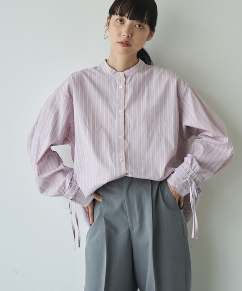 袖リボン×バンドカラーシャツで新鮮な着こなしに■デザイン/素材柔らかく肌触りの良いELSコットンを使用したバンドカラーシャツ。取り外し可能な共布の袖リボンがシンプルなシャツにアクセントを加えます。リボンを外せばオンスタイルにも使いやすく、冬にはニットやスウェットとのレイヤードスタイルにも◎1枚でもサマになる丈長めのゆったりシルエットで、気になるボディーラインもさり気なくカバー。秋から春まで、ロングシーズン活躍するアイテムです。透け感:オフホワイトややあり生地の厚さ:普通光沢感:なし裏地:なし家庭洗濯:可能(ネット使用)【注意点】※撮影商品はサンプルの為、実際の仕様と異なる場合がございます。※画像の商品は光の照射や角度、お使いのモニター環境により、実物と色味が異なる場合がございます。スタジオ物撮りの画像が実物の色味に一番近くなっております。※予約商品の場合、お届け予定はあくまでも目安となります。生産の都合上、お届け時期が前後したり実店舗入荷時期とずれる場合がございますので、あらかじめご了承ください。品名:ELSコットン ソデリボンバンドカラー品番:76106450214