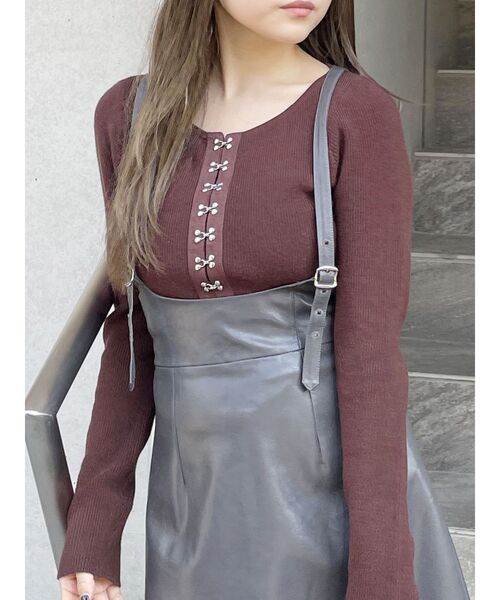 【2024 WINTER COLLECTION】 今年取り入れたいトレンドアイテム ホックを開けた自分なりの着こなしも◎ ■アイテム トレンドのビスチェライクな フロントホックデザインがポイントのニット。 裾部分もラウンドさせているので、 より一層ビスチェライクでおすすめです。 また、ラウンドさせることでウエストラインも すっきり見えてスタイルアップも叶います。 ホックを少し開けて、デコルテ見せさせても ヘルシーな抜け感が出て◎ -------------------------------------------- 裏地:なし 生地の厚さ:普通 伸縮性:ややあり サイズ感:普通 -------------------------------------------- 【知って得する便利機能◎ 】 ■商品のお気に入り登録 再入荷時、ラスト1点の時にお知らせします。 ■ブランドのお気に入り登録 新商品やお得な情報など、いち早くお得な情報をゲット! ぜひご活用ください。 ※着用画像はフラッシュの加減で実際の製品と色味等が異なる場合がございますので、生地のズームアップ画像をご確認ください。 ※ご利用の端末画面の設定により実際の商品と色味が異なる場合がございます。