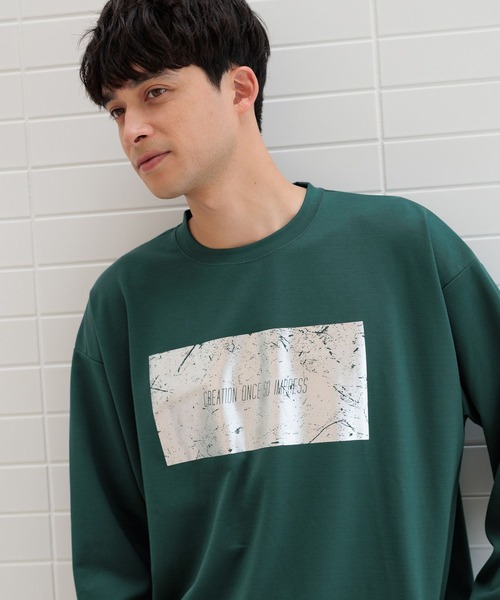 フロントの箔プリントがアクセントの長袖T。 ゆぅたりとしたリラックスシルエットなのでスタイリングしやすい1点です。 1枚ではもちろん、羽織のインナーアイテムとしても活躍するアイテムです。 【素材】 綿混の柔らかな素材感。 【スタイリング】 プリントにインパクトがあるのでスタイリングの主役にもおすすめ。 合わせるボトムを選ばずスタイリングできるアイテムです。