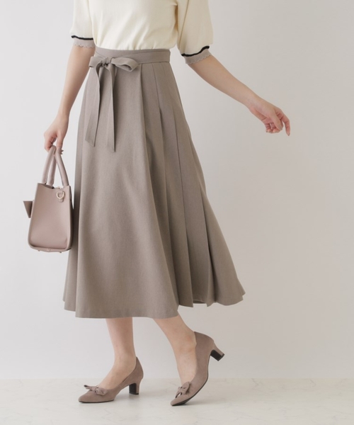 左脇に巾広めのタックプリーツが入ったセミフレアースカート~POINT~タックプリーツのデザインが可愛く、広がりすぎないフレアー感が上品なスカートです共地のウエストリボンは取り外し可能なので、トップスにあわせて着用頂けますキレイめスカートなので通勤はもちろん、おでかけにもぴったりです◎【素材・機能】梳毛ライクなポリエステル生地を使用※裏地あり※照明の関係により、実際よりも色味が違って見える場合があります。また、パソコン・スマートフォンなどの環境により、若干製品と画像のカラーが異なる場合もございます。【スタッフコメント】・saori(153 )キレイなシルエットで使いやすく、トップスを選ばずあわせられるので一枚あると重宝します◎シンプル見えしながら、タックプリーツのデザインが効いていてオシャレです!【24AW NEW ARRIVAL】【24AW NEW COLLECTIOモデル情報:身長165cm B79 W58 H86 着用サイズ:38(M)店舗へのお問い合わせ商品番号:508-79020●製品寸法:36(S):総丈78cm W63cm H103cm38(M):総丈80cm W66cm H106cm40(L):総丈82cm W69cm H109cm42(LL):総丈83cm W72cm H112cm備考:
