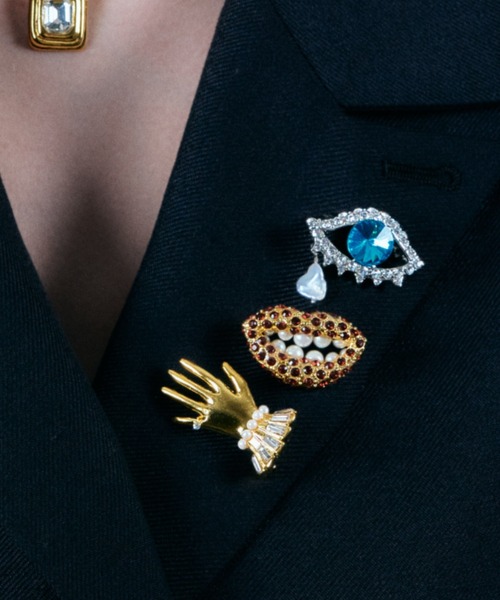 【ラフ ブローチ】シュルレアリスムの芸術家、サルバドール・ダリの作品から着想を得た、チャーミングなコレクション。ガラスを敷き詰めてふっくら感を表現したリップモチーフには、歯を模したパールの装飾が。色っぽいモチーフにウィットを効かせたことで、圧倒的なインパクトを放つアクセサリーに。同シリーズのブローチと組み合わせて着用すると、遊び心が際立っておすすめです。#BO126日本製素材:合金,ガラス,樹脂パール,鉄サイズ:縦2cm×横3.2cmパール:3mm〜5mm重量:8.7g※デイリーはもちろん、セレモニー、オケージョンシーンにも最適です。※オリジナル巾着にお入れしてお届けします。※金属のピンは触れることで金属を通じて身体に帯びた電気が放電されるので、静電気防止作用がございます。<IRIS47(イリスフォーセブン)>"IRIS"とはギリシャ神話に登場する、空と海を繋ぐべく、人類と神々を繋ぐ虹の女神。作り出すジュエリーが届くべき人の手に渡りますようにという思いを込めています。身につけることで自然体の自分を引き立てるようなジュエリーを提案するブランドです。質と付け心地の良さを大切にエレガントでエッジの効いたジュエリーを展開しています。全てオリジナルデザインを日本の熟練した職人と一緒にお作りしております。<H.O.V -フォブ->WE'RE ON A MISSION OFMINDFUL CONSUMPTION あらゆるライフステージにおいて芯から必要とされるものをお届けすることが私たちのミッションと考えます。 身に付ければ心が満たされる様な美しいデザインとは何かを日々想像しています。良い素材を選び熟練の職人技術を尊び慎重な生産を行っています。そうすることで長く着用して 愛されるものを創り出し、購入後の商品のセカンドライフも提供したいと考えています。