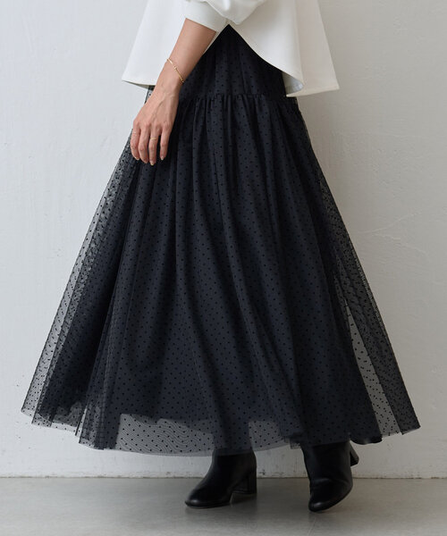 ■アイテム ふんわりとしたシルエットがフェミニンな雰囲気を演出するドットチュールスカート。 ウエスト部分はゴム仕様で、ストレスフリーな穿き心地も嬉しいポイントです。 シンプルなトップスと合わせるだけでサマになる、スタイリングの主役になるアイテムです。 ▼おすすめスタイリングアイテム ダンボールサークルプルオーバー ■素材・洗濯表示 素材 ドットチュール:ポリエステル100% 無地チュール:ポリエステル100% 裏地:ポリエステル100% 洗濯表示:ドライクリーニング ※着用時・洗濯時は、必ず取扱い表示・タグをご確認の上、お取り扱い下さい。 《お取り扱い上のご注意》 ・タンブル乾燥不可 《予約商品について》 ・サンプルの為、素材情報、洗濯表示については企画段階の情報を記載しております。公的機関での試験データ結果を受け、量産にあたり混率や洗濯方法の変更が発生する場合がございますので、ご了承くださいませ。 ・サンプルでの撮影、計測をしております。商品の仕様が一部変更になる場合がございます。 ・撮影サンプル品はブランドタグがついておりません。製品にはタグがつきますので、製品の表に縫い糸が見える場合がございます。 ・工場の生産の都合上、納期が変更になる場合がございます。検品や輸送の関係で、発送日が前後しますのでご了承ください。また、入荷状況により、お客様への発送が店頭販売より遅れる場合もございます。 ・店頭に陳列していた商品も含まれる場合がございます。 《商品画像について》 ご覧頂いている商品の写真につきましては、できるだけ実物の色に近くなるように努めておりますが お使いの環境(モニター、ブラウザ等)の違いにより、色の見え方が実物と若干異なる場合がございます。 予めご了承ください。 《ハートをタップして商品のお気に入り登録》 登録カラーの商品の「残りわずか」「再入荷」「値下げ」通知を受け取ることができます。 各ショップアプリにてブランドフォロー 新商品などの入荷情報、最新のニュースやお得な情報を受け取ることができます。