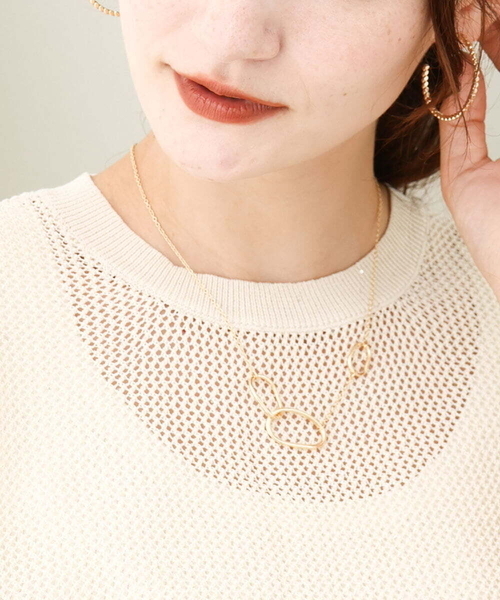 アシンメトリーに並んだ円形のパーツがアクセントのネックレス。ショートタイプは女性らしい品の良さを引き立たせてくれます。 ※自然光・照明の関係、パソコン・スマートフォンなどの環境により、実際と色味が違って見える場合がございます。予めご了承ください。商品の色味は、詳細画像をご参照ください。 ※サンプルでの撮影となるため、実際にお届けする商品と仕様やサイズが異なる場合がございます。 ※アクセサリーパーツ・部品などの金属部分に鉛が含まれている場合があります。 小さなお子様が口に入れたり誤って飲み込んだりしないように、使用や保管の際は厳重にご注意ください。 ▼カラー番号表記 ゴールド(95)、シルバー(96)