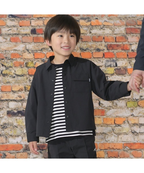 後ろヨークの恐竜刺しゅうがポイントの長袖シャツ。ポリエステル素材なので、シワになりづらく、洗濯しても乾きやすいです。スナップ釦なので、開け閉めしやすい仕様になっています。軽いので、ちょっとした寒さ対策用に持ち歩くにも便利なアイテムです。●生地の厚さ:普通●裏地:なし●ポケット:あり●伸縮性:なし●透け感:なし