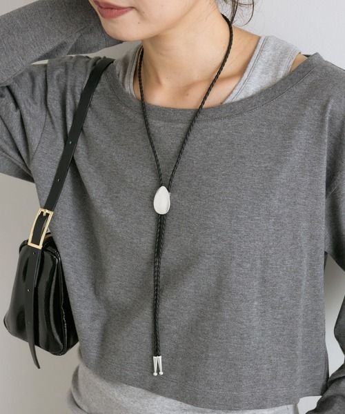 スタイリングのポイントになるループタイ●デザインハンサムな印象のループタイ。シャツにネクタイのスタイリングもメゾンのコレクションなどで目にすることが多いシーズン。ネクタイだとハードルが高く感じるかもしれませんが、ループタイだとネックレス感覚で楽しんで頂きやすいです。楕円デザインのパーツ部分でコードの長さの調節が可能。その日の洋服のバランスに合わせて調整していただけます。マットなシルバーの質感のパーツを使用しているので、主張しすぎずさらっと楽しんでいただけます。●サイズ全長約82㎝(長さ調整可能です)●素材真鍮/合成皮革--------------------------------------------------------------------------------【注意点】※画像の商品は光の照射や角度、お使いのモニター環境により、 実物と色味が異なる場合がございます。※入荷状況により、お届け予定が前後する場合があります。※お客様への発送が店頭販売より遅れる場合もあります。※追加生産商品は、一部の店舗、通販で販売中の場合がございます。 予めご了承下さい。----------------------------------------------------------------------【お買い物をもっと便利に楽しく♪】●「商品のお気に入り登録」で・・・ラスト1点や再入荷の通知が届きます。登録して頂いた商品だけが対象となる、あなただけのタイムセールが開催されることも!●「ブランドのお気に入り登録」で・・・新商品や再入荷など、いち早くブランドのお得な情報を受け取ることができますので、ご登録をおすすめします!--------------------------------------------------------------------------------