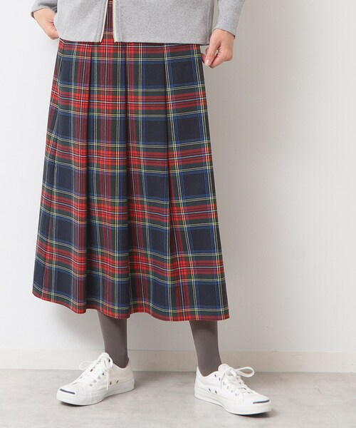 【デザインポイント】オリジナルチェック柄のスカート。全面タックプリーツデザイン。ウエストベルトもなくシンプルなスカートです。※ポケットなし【スタイリングポイント】薄手シャツやブラウス、ニットまで幅広く合わせやすいスカートです。【素材ポイント】ポリエステルながらスパン糸使いで光沢を抑えた厚みのあるしっかりした素材のチェック柄です。※裏地あり※照明の関係により、実際よりも色味が違って見える場合があります。また、パソコン・スマートフォンなどの環境により、若干製品と画像のカラーが異なる場合もございます。モデル情報:身長168cm B76 W58 H86 着用サイズ:02(M)店舗へのお問い合わせ商品番号:F58-79056●製品寸法:00(XS):W62cm H92cm 総丈79cm01(S):W65cm H94cm 総丈80cm02(M):W68cm H96cm 総丈81cm03(L):W72cm H98cm 総丈83cm備考: