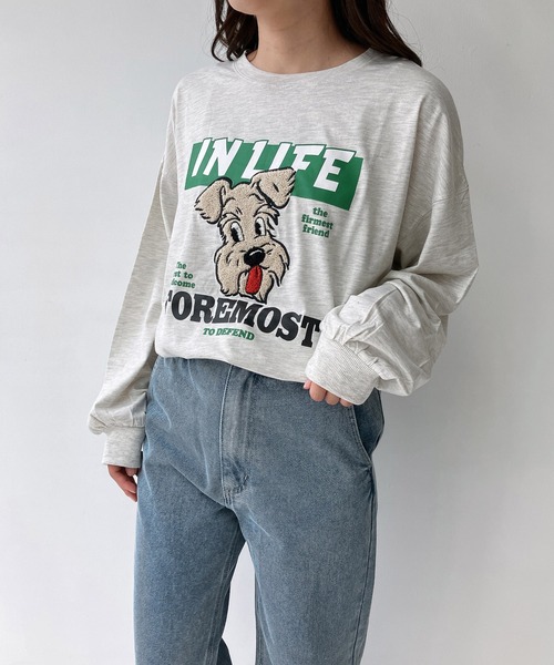 もこもことしたサガラ刺繍がポイントのドッグデザインTに長袖バージョンが登場! 可愛らしいドッグプリントに、オシャレな英文字がデザインされたサガラ刺繍Tシャツ。 ユニセックスで着用可能!!オーバーサイズでルーズなシルエットだから、カーゴパンツやワイドパンツとゆるっと合わせるのがおすすめ◎ シンプルなデニムはもちろん、ロングスカートやミニボトムなど女の子らしく合わせても可愛い便利アイテムです。 ▼商品について ・画像の商品はサンプルとなります。実際の商品と色味、仕様、加工、サイズ、素材等が若干異なる場合がございます。 ・サイト上のカラー名と、お届け商品に記載されているカラー名が異なる場合がございます。 ・商品の色味は、撮影場所や光のあたり具合などにより色味が違って見える場合がございます 。また、お客様のお使いのPCのモニター環境などにより色味が違って見える場合がございます。予めご了承の上ご注文下さい。 ▼お取り扱いについて ・着用またはお取り扱いの際は、アテンションタグや洗濯ネームを必ずご確認ください。 ▼返品・キャンセルについて ・着用、洗濯後の返品は致しかねます。 ・商品到着後、着用前に商品を確認して頂きますようお願い致します。 ♪商品のお気に入り登録 お気に入り登録した商品は、ラスト1点になった時、完売商品の再入荷、セールになった時にお知らせします。 ♪ブランドのお気に入り登録 新商品の発売、再入荷、セール情報など、ブランドのお得な情報を受け取ることができます。
