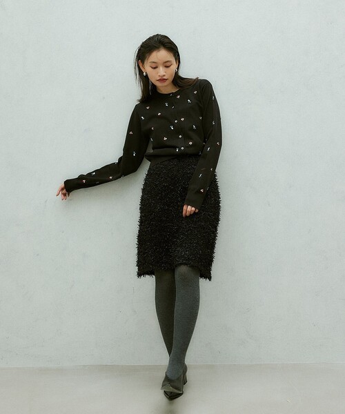 フェザーライクな素材感がキャッチーなニットミニスカート ■デザイン 羽のような糸が混ざっているニットで、ミニ丈のスカートをお作りしました。 ウエストゴムで着心地が楽なのもポイント。ゴムの仕様はウエストに切り替えを出さず、ニットの見返し仕立てにしていることでクリーンな見え方に。 短すぎない丈でタイツやブーツ合わせで着こなしやすく仕上げています。 ■素材 リリヤーンの糸に羽のような糸が一緒に撚られていて、編み立てるとフェザー感がかわいい素材。 ポリエステルの細い糸を一緒に使って、くたっとしすぎないように仕上げています。 ※ジャージ素材の裏地付き。 ■コーディネート パーカー合わせのカジュアルスタイルや、あえてジャケットスタイルでも。 足元はブーツやタイツ合わせから、ソックスとソールの厚いローファーのカジュアルな着こなしもおすすめ。 まだTシャツ合わせの時期は、スタイリングのポイントとしてデニムとレイヤードも◎です。 #秋服,#秋物,#冬服,#冬物,#24AW,#24FW,#ミニスカ,#ニットスカート,#ショートボトム ============================ 裏地:あり 透け感:なし 伸縮:あり 光沢感:なし ケア方法:手洗い可 ============================ < EMMEL REFINES(エメル リファインズ) > Pleasure ~今を楽しみ、変化を楽しむ~ EMMEL REFINESは変化していく時代やトレンドを恐れなく前向きに楽しみ、 今に満足せず常に自分を更新していきたい、 自分らしさを表現したい女性に向けたブランドです。 女性の共感を大切に、時代にフィットした新しいスタイルを提案します。 【注意事項】 ※画像の商品はサンプルです。 ※商品を使用前に、タグ等に記載されている「取り扱い上の注意書き」、「洗濯表示」を必ずご確認ください。 ※商品画像は、光の当たり具合やパソコンなどの閲覧環境により、実際の色味と異なって見える場合がございます。あらかじめご了承ください。 ※商品の色味の目安は、商品単体の画像をご参照ください。 お問い合わせの際は、ユナイテッドアローズ カスタマーサービスデスクまで下記の品名/品番をお申し付けください。 品名:EM HWテープヤーンフェザーライクMINI 品番:66241051702