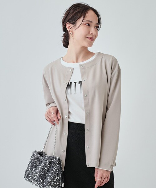 【デザイン】 気軽に羽織れるクルーネックカーディガン。 ゆったりしたシルエットで、気軽にサッと羽織っていただけます。 軽さが魅力で色々なアイテムに合わせやすい着丈にし、 オンにもオフにも、カジュアルもフェミニンスタイルにもマッチする着回ししやすい1枚です。 【スタイリング】 Tシャツやデザイントップスの上に羽織るだけでこなれ感を演出。 スキニーやテーパードなどのすっきり見えのボトムや、 ワイドパンツやロングスカートともバランスよく着ていただけます。 柄ワンピやキャミワンピの上にもサッと羽織るだけでコーデに差がつきます。 ボタンを閉じればゆるトップスとしても。 肌寒い時期にはインナーにハイネックなどレイヤードした着こなしにもマッチします。 【素材】 裏面サラサラで袖を通しやすく、肌に触れても心地よい、落ち感あるカットソー素材を使用しています。 厚すぎず薄すぎず、シワが気になりにくいのもうれしいポイントです。 ※照明の関係により、実際よりも色味が違って見える場合があります。また、パソコン・スマートフォンなどの環境により、若干製品と画像のカラーが異なる場合もございます。 モデル情報:身長163cm B81 W59 H88 着用サイズ:02(M) 店舗へのお問い合わせ商品番号:C62-39006 ●製品寸法: 02(M):着丈62cm B114cm 袖丈52cm 肩幅48cm 03(L):着丈64cm B119cm 袖丈53cm 肩幅49cm 04(LL):着丈66cm B124cm 袖丈54cm 肩幅51cm 備考: