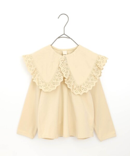 大きなフリル襟が可愛い長袖Tシャツ。 刺繍レースで、秋らしさを出すようにデザインしました。 ストレッチ素材を使用しているので着心地も良いアイテムです。 使いやすいアイボリー・ブラックと、プルミエらしいニュアンス感のあるブラウンをラインナップ。 【取り扱い表示】 40℃を上限に洗濯機で洗濯、デリケートアイテムモード、ネット使用、漂白剤を使用禁止、色物は同系の色と一緒に、洗濯後直ちに取出し、タンブル乾燥不可、日陰で吊り干し、低温でアイロン、商業ドライクリーニング不可 ※商品により多少の誤差が生じる事がございます。あらかじめご了承下さい。 ※ご使用のパソコンやブラウザの環境により、実際の色とは多少異なる場合がございます。 ※モデル着用写真についてはイメージの為、実際の商品とカラーや仕様が異なる場合がございますので、商品画像をご覧ください。 【 p.premier -ピードットプルミエ- 】 着心地のよい素材 細やかなシルエットまでこだわったデザイン コーディネートしやすいけれど存在感のある色使い シンプルで、それでいて今っぽい 男の子も女の子も気分で選べる 何気ない1日から、とっておきの日まで p.premierは ママの「こんなこども服がほしい」を とくべつな想いを込めて届けます