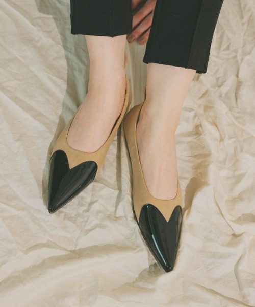 ハートパンプス ■商品説明 さりげないハートモチーフのフラットパンプス。 柔らかい素材で歩きやすく、クッション性もばっちり。 デニムなどのカジュアルコーデにはもちろん、フォーマルシーンにも合わせやすい1足です。 ★STAFFが試着しました★ 【STAFF M】 買うなら38(約24.0cm) ・足のサイズ:22.5cm ・甲高/幅広 こちらのパンプスは足幅狭め、甲低めの為、37(約23.5cm)は余裕のない程ピッタリでした。 柔らかい素材の為、履いてるうちに馴染んでくるとは思いますが、靴下合わせもしたかったので、38(約24.0cm)が楽に履けました。 大きめサイズを選んでも、カパカパ脱げる感じはないので、ストレスなく履ける大きめサイズを選びます。 【STAFF R】 買うなら39(約24.5cm) ・足のサイズ:24.0cm ・甲普通/幅広 普段24.0cmの靴を履くことが多いですが、39(約24.5cm)を履いたところ、横幅がピッタリで歩いてもしっかりと足にフィットしてくれました。 縦幅に比べて横幅が短めのつくりとなっているので、38(約24.0cm)は足が入るものの足先がかなり窮屈だったため買うなら39(約24.5cm)にします。 スカートなどはもちろん、ロングパンツをはいてもエナメルの部分が裾からワンポイントで見えてくれてとてもかわいいアクセントになります。 【STAFF K】 買うなら38(約24.0cm) ・足のサイズ:23.0-23.5cm ・甲高/普通 普段のサイズ37(約23.5cm)は少し窮屈に感じたので、38(約24.0cm)のサイズが良かったです。 柔らかい生地なので、履いていくうちに馴染んでくるのかなと思います。 夏は素足で、秋からはタイツに合わせて履きたいです。 ~*~*~*~*~*~*~*~*~*~*~*~*~*~* ▼ 商品のお気に入り登録 ▼ 完売カラーの再入荷通知や、ラスト1点の通知、 セールの通知も受け取ることができます。 ぜひご登録ください♪ ▼ ブランドのお気に入り登録 ▼ 新商品や再入荷など、 ブランドのお得な情報をいち早くお知らせ! ぜひご登録ください♪