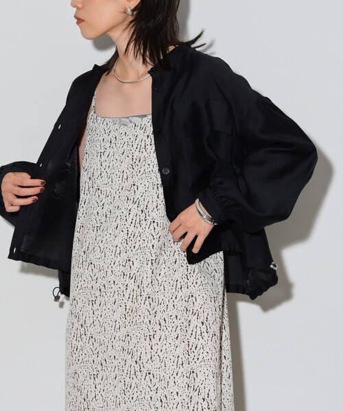 Design Point程よい透け感のシアー素材で抜け感たっぷりな1枚。身体のラインを拾わないボクシーなシルエットです。スッキリとしたクロップド丈で腰高な印象に◎。ミリタリー感のある大きめのフラップ付きポケットもデザインポイントです。裾のドロストがスポーティーでカジュアル感をプラスしてくれます。Styling Pointクロップド丈なので、ワンピースやオールインワンなどロング丈のアイテムとも相性◎。ハイウエストやボリューム感のあるボトムともバランスよく着られます。羽織りとしてはもちろん、釦を閉めてシャツのように着用も可能。Fabric Pointシアー素材で透け感があり、清涼感たっぷりな素材感です。ほどよい光沢感が大人な印象に。*****************************\\気になるアイテムはお気に入り登録がおすすめ//気になるアイテムのページにある「 マーク」をクリックして簡単に追加できます。登録すると、再入荷通知やお値下げ情報をメルマガにてお知らせ!マイページにてお気に入り一覧もチェックできます。*****************************※照明の関係により、実際よりも色味が違って見える場合があります。また、パソコン・スマートフォンなどの環境により、若干製品と画像のカラーが異なる場合もございます。店舗へのお問い合わせ商品番号:523-49027●製品寸法:38(M):着丈54cm B120cm 袖丈52cm 肩幅56cm備考: