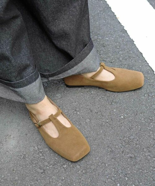 シーズンムード高まるスウェード調のTストラップシューズ。 SSに出していたスクエアトゥTストラップシューズ[c3R3434]よりも細身で女性らしいシルエットに。 ベルト部分はゴム仕様で着脱しやすいのも嬉しいポイントです。 インソールは起毛生地で秋らしくあたたかみがあり、履き心地の良い素材感です。 ソックスとのコーディネートを楽しむのもおすすめ◎ シンプルなデザインでマニッシュにもフェミニンにも、合わせるアイテムを選ばずデイリーに活躍します。