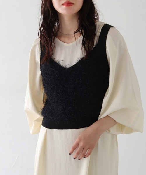手持ちのTシャツやブラウスにプラスするだけでトレンド感がアップするニットビスチェシーズンライクなフリンジニットビスチェ。肩の部分はすっきりと、フリンジ部分はふわっとした手触りで柔らかくレイヤードスタイルに最適!ブラウスからカットソーまで、インナーを選ばずどのアイテムとも重ねやすいサイズ感。≪Styling≫カジュアルなロゴTやフェミニンなブラウスまで相性が良く、幅広いスタイリングを楽しんでいただけます。短い着丈なので、ナロースカートはもちろんスラックスやデニムパンツなど、ゆとりのあるボトムスとの組み合わせもサマになります。Tシャツからタートルネックニットまでスタイリング次第でオールシーズン着用して頂けます。≪Fabric&Detail≫伸縮性・・なし裏地・・・なし透け感・・・ややあり※撮影場所により、実際の色味と若干異なる場合がございます。 あらかじめご了承くださいませ。