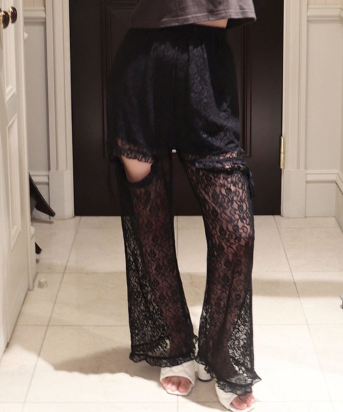 TITTY&CO.2024SS collection[detail]透け感のあるレース地でさりげなく肌見せが叶うレースパンツ。花柄のレース地を使用し夏らしく涼しげな印象に、フリル仕様にカットアウトされたデザインでトレンドを詰め込んだ1着に仕上げました。リボンでカットアウトの幅を変えられるため着方を調節できるのも特徴。裾に向かってフレアに広がるワイドシルエットは下半身を綺麗なラインに魅せてくれます。ウエストゴムのためストレスなく着脱が可能。カラバリは春夏らしい3色展開でご用意、ガーリーなトップスと合わせたい方はホワイト、ベビーピンクで甘めに、大人っぽく仕上げたい方はブラックがおすすめ。普段のスタイリングに取り入れるだけでバレエコアに仕上がるこの夏マストバイアイテムです。[Fabric]ホワイト、ブラック、ベビーピンクの3色展開。透け感があり軽いレース素材。--------------------------裏地:あり透け感:ピンク、ややあり伸縮性:なし生地の厚さ:薄め-------------------------- [styling]クロップド丈との相性も良くスッキリとまとまるシルエットでスタイルアップ。同素材のレース地を使ったリボンチュールレーストップス(品番:841107043)と合わせセットアップ風に着用するのもイチオシスタイルです。透け感に抵抗のある方でもビックシルエットのTシャツと合わせていただくとカジュアルミックスにまとまります。■品番:741741010(お問い合わせの際には左記品番をお伝え下さい)【商品のお気に入り登録】完売カラーの再入荷や、セール通知などお得な情報を受け取ることができます。ぜひご登録下さい♪【ブランドのお気に入り登録】新作入荷や再入荷、セールやクーポンイベントなど注目のブランド情報を受け取ることができます。ぜひご登録ください!!