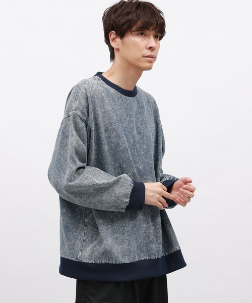 洗い加工を施したデニムカットソー。 袖・裾・襟元のパイピングがアクセントになった1枚です。 オーバーシルエットでリラックス感のある着心地もポイント。 【素材】 綿100%の柔らかな肌触りの素材。 【スタイリング】 カジュアルなアイテムとの相性〇