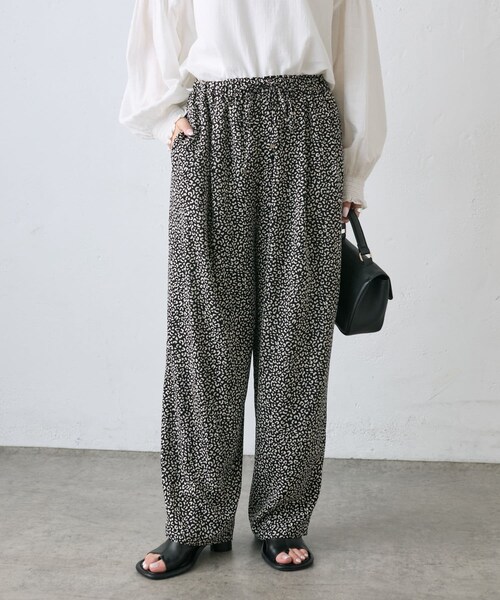 PUAL CE CIN 2024 AW collection【EFFORTLESS CLASS】洗練されたミニマルな要素とオーセンティックで肩の力を抜いたエフォーレスなスタイリング◇スタイリングに映える軽やかなイージーパンツ◇●デザインプリントが異なり、それぞれの雰囲気が楽しめるイージーパンツ。総ゴム仕様のウエストで楽な着心地を叶えながら、落ち感のあるシルエットできれい見えを叶えます。ベーシックなカラーベースに施されたプリントは、主張し過ぎず夏のお供にぴったりです。可憐な小花柄、きれいめなリーフ柄、コーデのアクセントになるレオパード柄の3色展開です。●スタイリングTシャツを合わせたり、リネンシャツをさらりと羽織ってリラックス感のある着こなしがおすすめ。スタイリングのポイントとして取り入れたい一着です。●素材さらりとした軽い素材で清涼感があります。ラフさときちんと感を兼ね備えたイージーパンツです。===============================洗濯方法:ドライクリーニング/手洗い透け感:あり裏地:なし伸縮性:なし光沢感:なし生地の厚さ:薄手【スタッフコメント】年齢:20代後半/身長:154cm/普段着用サイズ:Sサイズ着用感:ウエストは緩めでしたが紐で調節ができ、ストレスフリーな穿き心地です。===============================※撮影場所やお使いのモニター環境により若干お色味が異なる場合がございます。特にロケの撮影では明るく見える傾向にございます。※予約商品はサンプルで撮影をしております。若干の仕様が変更になる場合がございますので予めご了承の上ご注文くださいますようお願いいたします 。※着用、お取り扱いの際は、商品についている品質表示とアテンションタグを必ずご確認下さい。---------------------------------------------------------------【お買い物をよりお楽しみいただくために】気になるアイテムの『♡お気に入り登録』登録した商品の「残りわずか」「再入荷」「値下げ」などの情報や、クーポンなどのお知らせを受け取ることができます!PALCLOSETアプリのブランドフォロー新商品や最新ニュースのUP、イベントなどのお得な情報のお知らせが届き、いち早くチェックすることができます!