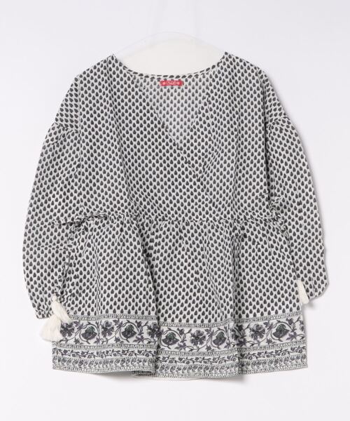 インドの伝統工芸ブロックプリントの柄を、スクリーンプリントで表現したカシュクール風トップス。ふんわりと軽やかに着られる綿素材で、涼やかな一枚です。 両サイドの紐でシルエットを調整できますので、お好みのシルエットにしてお楽しみください。 ※こちらの商品は1点1点職人による手作りとなります。その為、形や色合いなど若干異なる場合がございます。あらかじめご了承ください。 Amina Collection Co.,LTD.