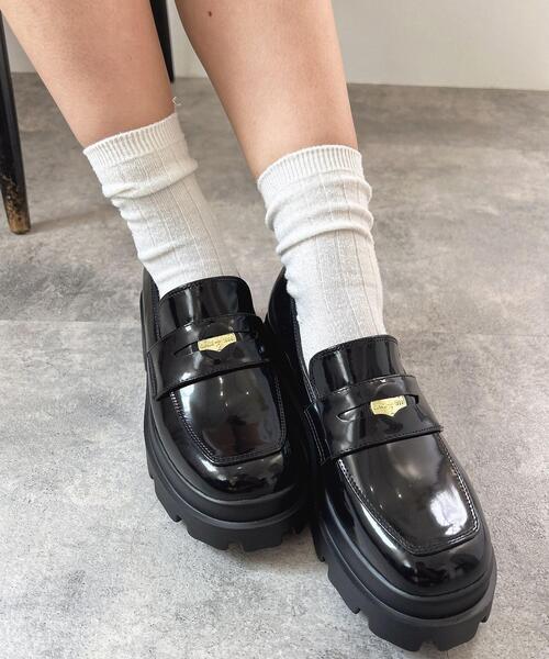 ボリュームソールで脚長効果抜群のコインローファー。 その名の由来の通り、アッパーにコインを挟んだデザインが印象的なアイテムです。 ゴツめのフォルムながらも軽いのが◎。 傾斜が少ないので、長時間歩いても疲れにくくなっています。 光沢のあるフェイクレザーが上品な印象。 どんなスタイルにも合わせやすいのでワードローブに追加決定です。 ・重量:約384g(片足Lサイズ) 対応目安サイズ Mサイズ(23cm~23.5cm相当) Lサイズ(24cm~24.5cm相当)