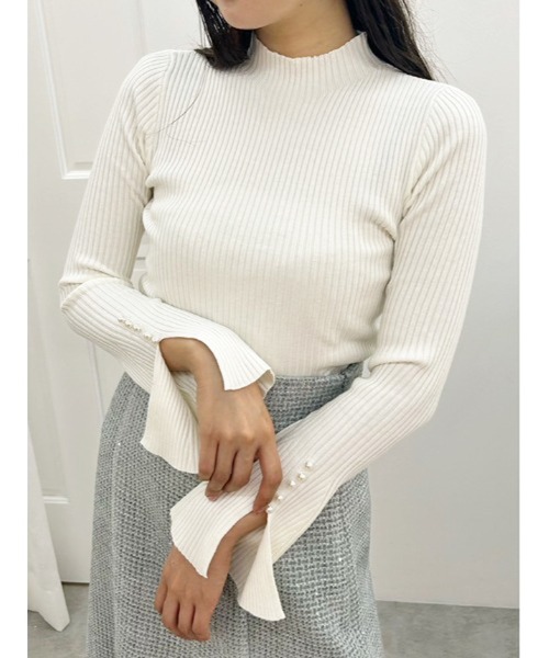 \ 手元のフリルで写真映えも叶うニット / 一見シンプルなリブタートルニットですが、袖口がフレアになったトレンドライクなアイテム。 切替えのない、袖口からスーッとつながる様な自然なフレアなので、大人っぽい雰囲気になります。 袖口にはスリットと、その上にパールがあしらわれており、普段の何気ない動作で目に留まり、華やかさを増してくれます。 ▼スタイリング シンプルで使いやすい万能アイテムですが、袖口が広がっている分、タイトシルエットやマーメイドシルエットのボトムと合わせるのがおすすめです。 顔回りが華やかで写真映えするニットなので、クリスマスや年末年始などのお出かけにもぴったりです! ▼おすすめスタイリングアイテム ・チェーン付ハイウエストフレアパンツ ・ジャカードコルセットマーメイドスカート ・ツイードハイウエストコルセットスカート ※着用画像はフラッシュの加減で実際の製品と色味等が異なる場合がございますので、生地のズームアップ画像をご確認ください。 ※ご利用の端末画面の設定により実際の商品と色味が異なる場合がございます。 【商品特徴】 透け感:なし 伸縮性:あり 生地の厚さ:普通 サイズ感:普通 裏地:なし ポケット:なし ~~ZOZOTOWNでお買い物を楽しむ便利機能~~ ♡商品のお気に入り登録 完売カラーの再入荷時、ラスト1点の時、セール開始時に通知でお知らせします。 予約アイテムが入荷して通常販売になった時もお知らせしてくれます! ♡ブランドのお気に入り登録 新商品や再入荷、セールやクーポン情報など、 ブランドのお得な情報をいち早く受け取ることができます! ~~~~~~~~~~~~~~~~~~~~~~~
