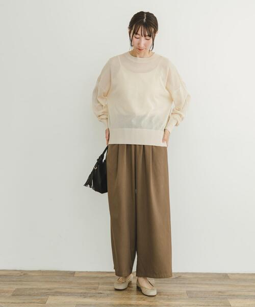 大人ライクな程よい透け感が特徴のシアー生地で仕立てたニットプルオーバーと、ワイドシルエットで楽な着心地を叶えたタックパンツのセット。1セットでサマになるコーディネートが完成する、忙しい朝の味方です◎お手持ちのアイテムとも組み合わせれば、一気にスタイリングの幅も広がりますよ♪ 【2024 Autumn/Winter】【24AW】 総重量(ニット) : 約185g ※商品画像は、光の当たり具合やパソコンなどの閲覧環境により、実際の色味と異なって見える場合がございます。予めご了承ください。 ※商品の色味の目安は、商品単体の画像をご参照ください。 ▼お気に入り登録のおすすめ▼ お気に入り登録商品は、マイページにて現在の価格情報や在庫状況の確認が可能です。 お買い物リストの管理に是非ご利用下さい。 素材感 透け感 : あり(ニットのみ) 伸縮性 : あり(ニットのみ) 裏地 : なし 光沢 : なし ポケット : あり FREE