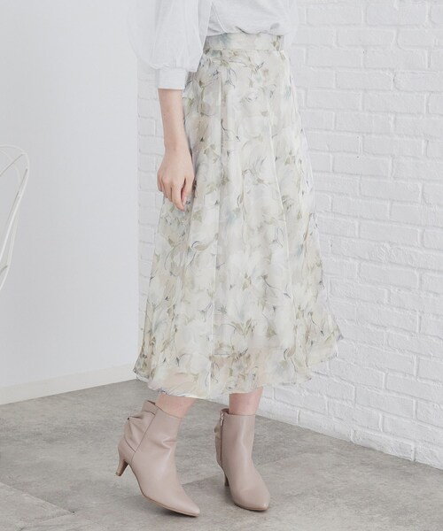 オーガンジーにフラワープリントが施された華やかなフレアスカート 【素材】 ・シアー感のあるオーガンジー素材にペイントタッチのフラワー柄をプリントしました。 ・裏地のカラーを同色系で合わせて、柄に奥行きを与えています。 ・マシンウォッシャブルとイージーアイロンなので、ご自宅で簡単にお手入れしていただけます。 ※裏地あり ※こちらの商品はやや透け感があります。 【デザイン】 ・オーガンジーに施されたフラワープリントが3Dのような奥行のあるフレアスカートです。 ※ポケットなし ※照明の関係により、実際よりも色味が違って見える場合があります。また、パソコン・スマートフォンなどの環境により、若干製品と画像のカラーが異なる場合もございます。 モデル情報:身長165cm B79 W58 H86 着用サイズ:38(M) 店舗へのお問い合わせ商品番号:C58-79012 ●製品寸法: 36(S):W60~62cm H90cm 総丈76cm 38(M):W63~65cm H93cm 総丈77cm 40(L):W66~68cm H96cm 総丈78cm 42(LL):W70~72cm H100cm 総丈79cm 備考: