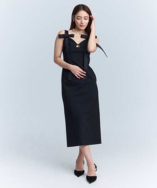 華やかなリボンディーテールワンピース【Design】ハンサムなストライプ模様のTR素材でお作りしたワンピースにトレンド感のあるリボンディティールを大胆にあしらいました。バックスタイルにもこだわったワンピースです。甘さとハンサムさを兼ね備えたデザインは今季一推しの1枚です。【Styling】シンプルなタートルニットはもちろん、カジュアルにTシャツやロンT合わせ、モードに仕上げたい時はシャツのレイヤードなどがおすすめです。1枚で華やかな主役級リボンワンピースなので、シンプルなトップスでコーデがまとまりやすくなります◎【Fabric】ややストレッチのあるTR素地、肩紐にはマットサテンを使用しました。表地:ポリエステル67% レーヨン30% ポリウレタン3%裏地:ポリエステル95% ポリウレタン5%水洗い不可 石油系ドライクリーニング厚み:□薄手 ■普通 □厚手透け感:■なし □あり伸縮性:■なし □あり裏地:□なし ■あり注意:お使いのモニターによって、カラーが違って見える場合がございます。※素材・仕様は一部変更になる場合がございますので予めご了承ください。※素材・仕様は一部変更になる場合がございますので予めご了承ください。★《お気に入り登録》でお得な情報がいっぱい★・「商品のお気に入り登録」で再入荷通知や、ラストの通知、セール通知も受け取ることができます。・「ブランドのお気に入り登録」で新商品や再入荷など、お得な情報を受け取ることができます!【eimy istoire/エイミーイストワール】女性はみんな綺麗になりたいだからお洒落が大好きでやめられないそんな女性に贈る最高に美しい物語メーカー品番:1124530205