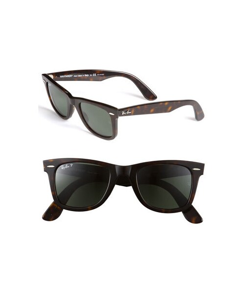 A timeless silhouette styled with black lenses and handimported. Approx. lens width: 50mm. Approx. bridge width: 22mm. Approx. temple length: 140mm. 100% UV protection. Acetate. By Ray-Ban; imported. Men's Furnishings.