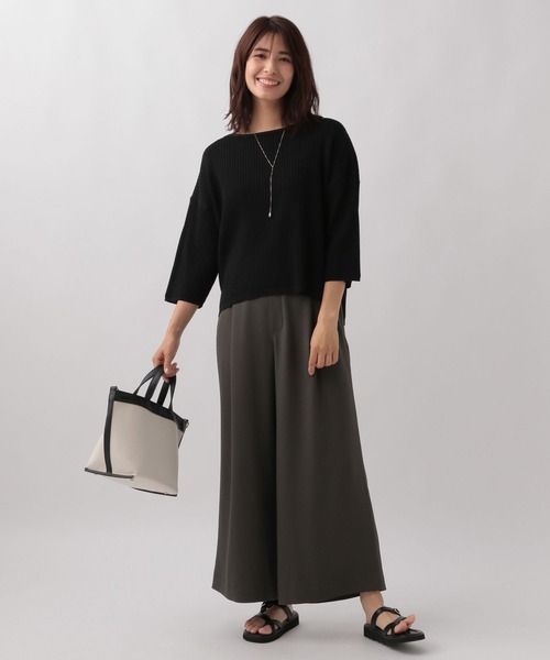 シンプルながらも編地の変化で差をつける一着 シンプルなシルエットでマルチに使いやすいニット。 表情のあるニット編地をシンプルなT型プルオーバーに仕上げました。 ほどよいきちんと感で通勤にもOk。 ーーー ワイドパンツやハイウエストスカートなどとのスタイリングがおすすめです。 【素材】 ・さらっとした柔らかめのニット素材 ・編地の変化でほどよい肉厚感 【悩みに“効く”ポイント】 ・縦見えの編地で細見えが叶う ・編地変化でコーディネートに奥行きが出せる