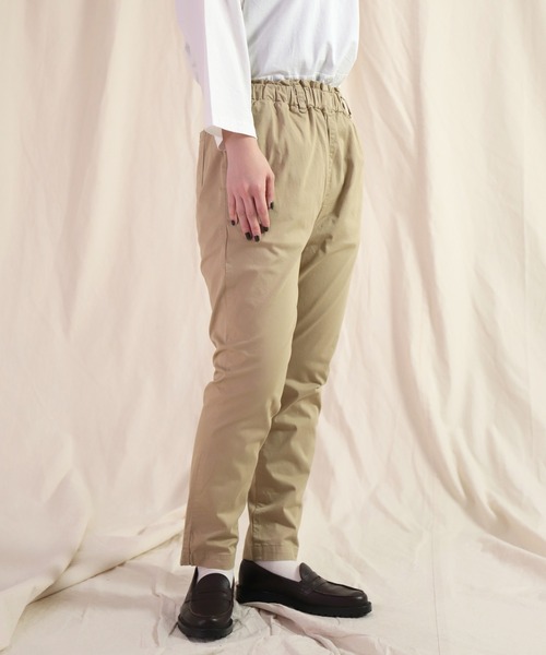 [ Brocante STANDARD ITEM ]フランス語で “coquet” コク=可愛い・おしゃれ<素材・デザイン>ストレッチの効いたコットン・ポリウレタン生地は、軽い仕上がりながら透け感もなくシーズンレスで扱える汎用性の高い素材。ストレッチ性があり履き心地よく自然と体に馴染んでくれます。仕上げの製品染めでカジュアルさを引き出しています。ウエストが総ゴムのイージーパンツ。紐を絞ることで調整ができます。腰まわりから太ももにかけてややゆとりがありつつ、膝から裾に向かって細くなるテーパードシルエットなのでカジュアルながらもスマートな着こなしを演出。スニーカーやサンダルを合わせればカジュアルに、革靴やパンプスを合わせれば落ち着きのある雰囲気になるので様々なスタイルを楽しむことができます。…………………… 透け感:なし裏地:なし厚さ:普通伸縮性:あり洗濯:洗濯可……………………コットン95%,ポリウレタン5%サイズ表記は0(Sサイズ)、1(Mサイズ)、2(Lサイズ)となります[Brocante / ブロカント] フランス語で古道具、市場を意味する。およそ100年ほどの年月のたった日常的な生活用品、古道具。そういったもののみが集められた市場の意としても用いられる。けして派手ではないけれど、どこか昔出会ったことのあるような懐かしさ、温かみを感じるような・・・・・・何代もの人に手渡り、生活に根付いて時を経てきたものからインスピレーションを受けて、モノづくりをしてくブランドです。お問い合わせ品番 : 33-0326Z / 33-326Z