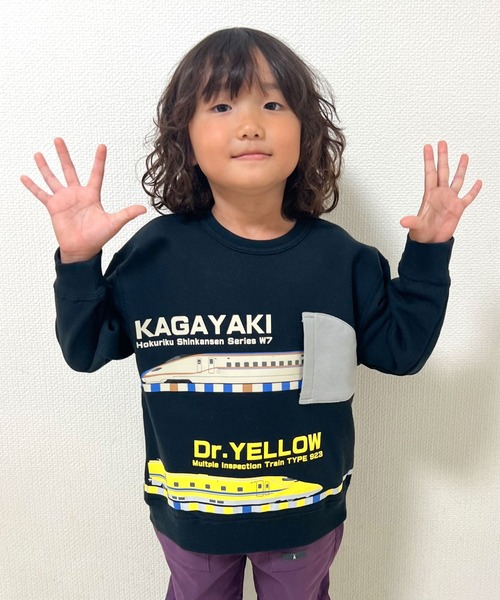 裏毛のトレーナーで大人気のドクターイエローとかがやきがプリントされています。 サイズはベビーサイズからキッズサイズまで取り揃えており、 ベビーサイズは肩開き仕様です。