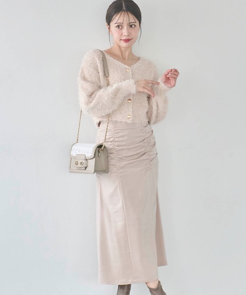 大胆にギャザーをいれたナローシルエットのスカートで、自然なドレープ感が大人っぽいです。生地は微光沢のサテン生地を使用しているので綺麗な印象で着用頂けます。■商品特徴裏地:あり生地の厚さ:普通透け感:なし伸縮性:なしポケット:なしファスナー:あり(横)※不良商品・配送不備以外の返品交換はお受けできませんので予めご了承ください。※画像の商品はサンプルです。実際の商品と色味、仕様、加工、サイズ等が若干異なる場合がごさいます。※商品の色味・仕様は、商品単品トルソー画像をご参照下さい。※撮影時の照明やお使いのパソコン・スマートフォンの設定等により画像の色が実物と異なって見える場合がございます。予めご了承ください。