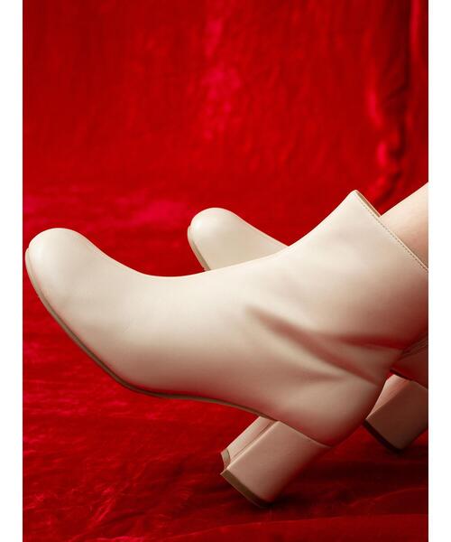 足に沿うようなオブリークトゥに仕上げたショートブーツ。 丸みを帯びたシルエットが、女性らしい柔らかな表情をプラスしてくれます。 内側にファスナーを施しており、脱ぎ履きをスムーズにすることができるのも嬉しいです。 カジュアルからキレイめな着こなしにと、様々なスタイリングにもバランスよくマッチしてくれる1足。 ※商品画像は、撮影環境やお客様のご利用のPC・スマートフォンのモニター環境などにより実物と色味に差異がある場合がございます。 【その他採寸】 M 全長:[ブーツ丈]13.5cm 幅:[履き口周り]26.5cm L 全長:[ブーツ丈]13.5cm 幅:[履き口周り]27.5cm