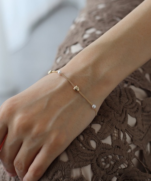 小ぶりなパールとハートモチーフが連なったステーションブレスレット ◦POINT 柔らかな光沢の小粒パールとミニハートが上品で女性らしい雰囲気で、毎日着けても飽きない上品なデザイン。 華奢でありながらも存在感のあるブレスレットなので1つ付けるだけでコーディネートのさりげないワンポイントに。 オールシーズン・様々なシーンでも使えて、どんな服にも馴染みやすく普段使いにぴったり。 カジュアルにも綺麗めにも取り入れていただけるアイテムです。 同シリーズのネックレス【87144690(ZOZO)512420-8826(店舗)】ピアス【87144728(ZOZO)5512420-8828(店舗)】とのセット使いもおすすめです。 ◦STYLING 毎日つけても飽きないデザインのアイテムなので普段使いはもちろん、 スタイリッシュなデザインなのでジャケットやパーティードレスなどに合わせていただくのも◎ 結婚式などのパーティーシーンや入学式・卒業式などのオケージョンシーンにもおすすめです。 ◦DETAIL アジャスター有り [ 商品のお気に入り登録 ] 完売カラーの再入荷通知や、値下げのお知らせ、ラスト1点の通知などが受け取ることができます。 随時再入荷していますので、お気に入り登録して頂くと再入荷情報がGET出来ます。 [ ブランドのお気に入り登録 ] 新商品の発売や再入荷、タイムセールやクーポン発行のお知らせなど BLUEEASTのお得な情報を受け取ることができます。ぜひご登録ください♪ ※撮影環境により、モデル着用画像は実際の商品と色味が異なって見える場合がございます。 また、PCやスマートフォンの環境により画面上と実物では多少色が異なって見える場合がございます。 詳細画像が実際の商品に一番近いお色となりますのでご確認ください。