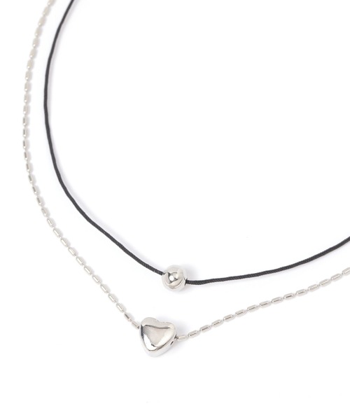 コード紐とチェーンの2連ネックレス。 ハートモチーフをトップにあしらった、可愛らしいデザインです。