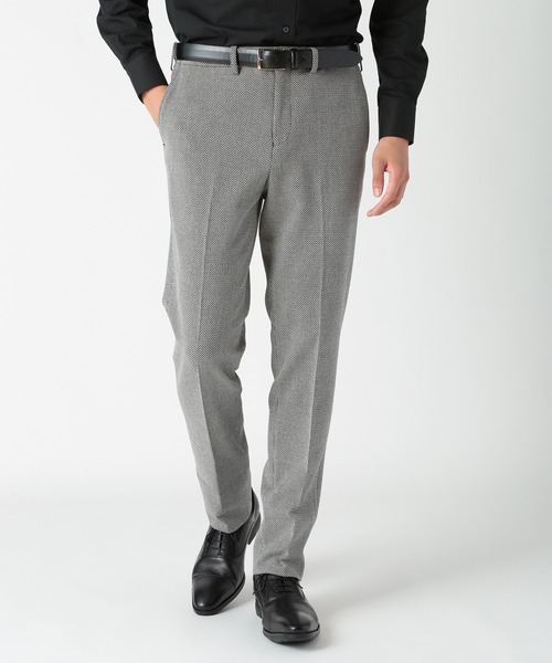 TR素材に40デニールのポリウレタンを巻きつけた糸をタテ糸とヨコ糸に使用し、快適なストレッチ性を実現したスラックス。 クリア仕上げを施すことで、毛羽のないさらりとした手触りの生地になっております。 ドビー組織になっているため、凹凸感とメランジ感が相まった、目を引くような素材となっています。 また、ウエストにはゴムが入っているため、ぴったりのウエストで着用することができます。 【TR素材について】 TR素材とは、テトロンと呼ばれるポリエステルとレーヨンを合わせた素材のこと。 テトロンは引っ張りなどの耐久性に高く、洗濯をしても劣化がしにくく、シワになりにくいところが特徴。 そこにレーヨンの持つ上品な光沢感と手触りの良さが加わることで高級感が出ます。 【ドビー組織】 ドビー織機で織られた織物のこと。 連続した幾何学模様に織り上がるのが特徴です。 【セットアップ情報】 別売りの同色・同素材のジャケットをご用意いたしております。 ぜひ、セットアップで着用してみてください。 メーカー品番:M0143FJ604 【カラー展開】 「グレー」「ブラック」の3色展開です。 【サイズ表記に関して】 商品タグにはサイズ部分に数字が表記されています。 01はSサイズ、02はMサイズ、03はLサイズ、04はLLサイズを表します。 ※照明・光の加減、PCやスマートフォンなどの環境により、製品と画像のカラーの見え方が異なる場合がございます。 ※画像はサンプルのため、色味やサイズ等の仕様が変更になる場合がございます。 ※サイズは弊社規定の採寸によって記載しておりますが、若干の個体差が生じる場合がございます。