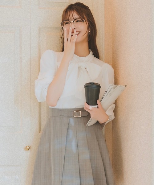 【王道の大人フェミニンスタイルを完成させる、タックスリーブボウタイブラウス】【Point】・お顔回りに華を添える、大きめのボウタイがポイントのタックスリーブボウタイブラウス。・ボウタイリボンは取り外し可能な2WAY仕様。外していただくと、クラシカルなムード漂うスタンドネックブラウスとしても着用いただけます。・クシュッと立体感のあるタックスリーブが女性らしく優しげな印象に。袖口のパールが気品ある着こなしに仕立てます。・ベーシックに使えるオフ・ブラックと、シーズンカラーが洒落見えするイエローを合わせた3色展開でお届けします。ケア方法:手洗い可能透け感:なし(オフのみ多少あり)裏地:なし伸縮性:あり光沢感:なし生地の厚さ:中肉F:(00):着丈 56㎝/バスト 96㎝/肩幅 33㎝/袖丈 44㎝/袖幅 23.7㎝/袖口幅 12.5㎝/裾回り 103㎝