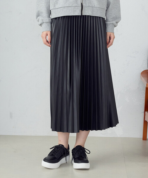 《素材》毎シーズン人気のプリーツスカート。歩く度に揺れる分量感のある裾が、着こなしに華やかさをプラス。蹴回しをたっぷりとりつつも、裾を断ち切り始末にすることですっきり軽く仕上げています。ウエストはゴムを使用した快適な着心地◎ベルト裏には別布のスレキを使用し、ギャザーでもたつきがちなウエストまわりをすっきりと仕上げました。秋冬にぴったりな、モードかつクラシカルなムードを含んだ1枚。様々なトップスと合わせやすく、ボリュームトップスとの着こなしも素敵です。※こちらのスカートはプリーツ加工に加え、裾が断ち切り仕様の為、丈詰めのお直しが出来ません。《素材》マットな質感の表面が上品な合成皮革素材。基布の部分にジャージ素材を使用しストレッチ性を持たせました。……………………透け感:なし厚さ:中肉伸縮性:なし光沢感:なし裏地:なし……………………※画像の商品はサンプルとなりますので実際の商品と仕様、加工、サイズが若干異なる場合がございます。※こちらの商品はFIVE FOXes独自の採寸方法となっています。本サイトのサイズガイドと採寸方法が異なる場合がありますのでご了承ください。