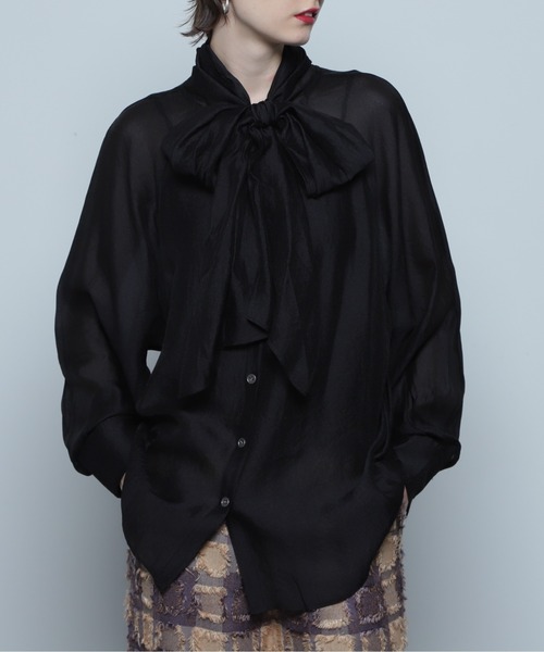 存在感のあるリボンタイがクラシカルな雰囲気のシアーボウタイブラウス ・シアー感のある薄手の合繊生地 ・リボンタイを後ろにして着用も出来る前後両用仕様 ・ホワイト(チェック)、ブラック、ライトグリーンの3色展開 【商品特性】 生地の厚さ:薄手 透け感:あり 伸縮性:なし 光沢感:あり 裏地の有無:なし 着用シルエット:レギュラー インナー着用:必要 【スタッフレビュー】 程よい透け感のある薄手の生地と大きなリボンボウタイがポイントのブラウス。 リボンタイは大き目で存在感抜群でも、もてあまさないギリギリの大きさにしています。 リボンタイを後ろにして着用も出来る前後両用仕様。 ジャケットに合わせて着用するとクラシカルな雰囲気に。 ニットのインナーとして着用してもリボンタイが目を引く華やかなスタイリングに。 ボトムス次第でON/OFFでの兼用のアイテムです。 今季は着回し力抜群のブラックとさわやかなライトグリーンに加え、チェック柄が登場。 【お気に入り登録】 ♡商品のお気に入り登録♡ 再入荷・残り1点・セールの通知を受け取ることができます。 ♡ブランドのお気に入り登録♡ 新商品・再入荷/・ショップおすすめトピックスなど、ブランドの情報を受け取ることができます。 【取扱注意事項】 モデルの着用画像の場合、光の当たり具合により、実際の色味と異なって見えることがございます。 色味は、商品生地の画像をご参照ください。