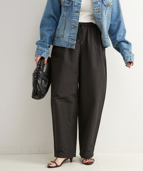 ラクな履き心地のイージーカーブシルエットパンツ。トレンドのカーブラインにメリハリを付けたワイドなシルエットが特徴。さらっとした素材でウエストはオールゴム仕様、ウエスト紐は生地と同色にし、カジュアルだけど綺麗めに履いていただけるラフな着こなしにぴったりなパンツです。ネットに入れ、洗濯機洗い(弱)可能で気軽にお手入れできるのも嬉しいポイント。※カラーにより素材が異なります。・ホワイト(010)カラー表地:綿61%、ポリエステル39%裏地:ポリエステル100%・ブラック(001)、ブラウン(020)カラー表地:綿61%、ポリエステル39%※取り扱いについては、商品についている品質表示でご確認ください。※ブラック(001)、ブラウン(020)カラーについて・着用中の摩擦や、汗、水濡れにご注意ください。濡れたままの状態で擦れると、色移りすることがあります。 ※ブラウン(020)カラーについて・直射日光を避け、日陰干しにしてください。 ※こちらの商品は、B.C STOCKでの取り扱いになります。 直接店舗へお問い合わせの際はB.C STOCK店舗へお願い致します。※照明の関係により、実際よりも色味が違って見える場合があります。またパソコン・スマートフォンなどの環境により、若干製品と画像のカラーが異なる場合もございます。※商品の色味は、商品アップ画像をご参照ください。着用スタッフ:157cm 着用サイズ:フリー詳細着用モデル:163cm 着用サイズ:フリー本体:洗濯機洗い(弱)